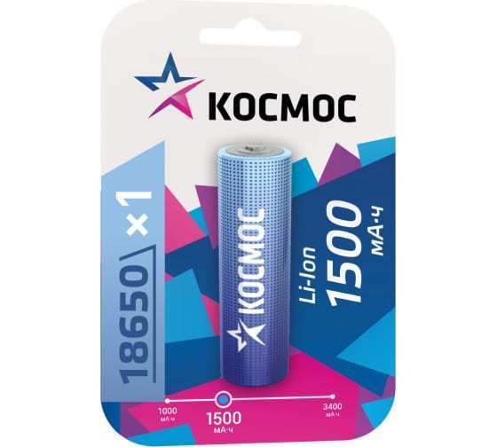 Космос 18650 Li-ion1500 mAh без защиты, 1BL /1/10/
