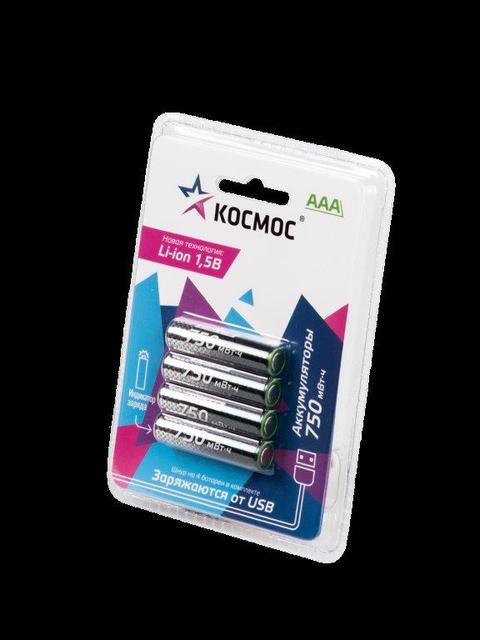 Космос ААА 750мАч Li-ion BL-4 USB-заряд /4/48/