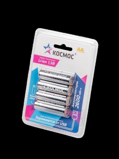 Космос АА 2600мАч Li-ion BL-4 USB-заряд /4/48/
