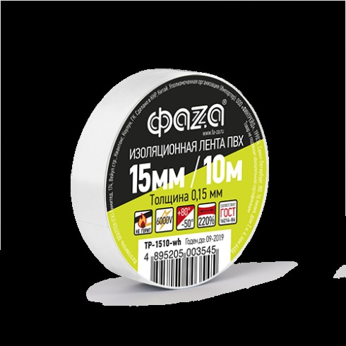 Изолента ФАZА TP-1510 (бел.) /10/200/