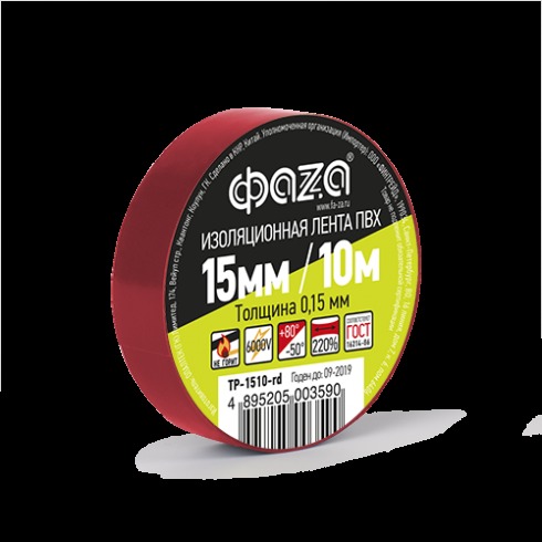 Изолента ФАZА TP-1510 (красн.) /10/200/