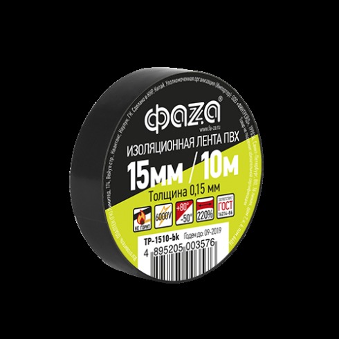 Изолента ФАZА TP-1510 (черн.) /10/200/