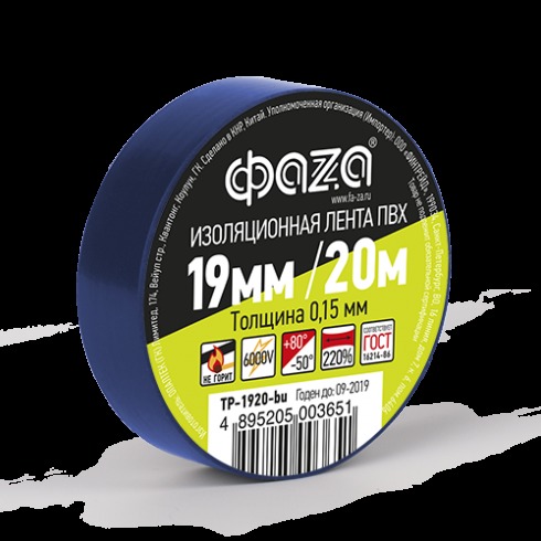 Изолента ФАZА TP-1920 (син.) /10/200/