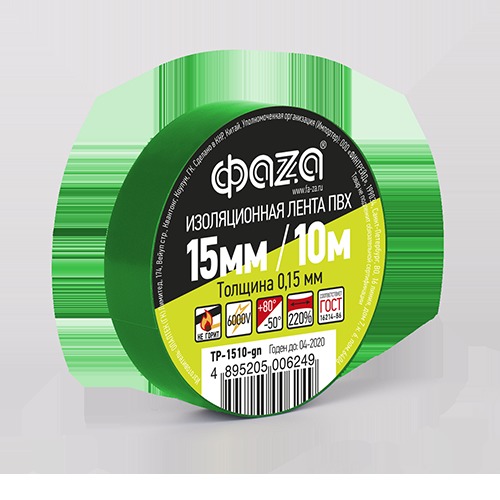 Изолента ФАZА TP-1510 (зел.) /10/200/