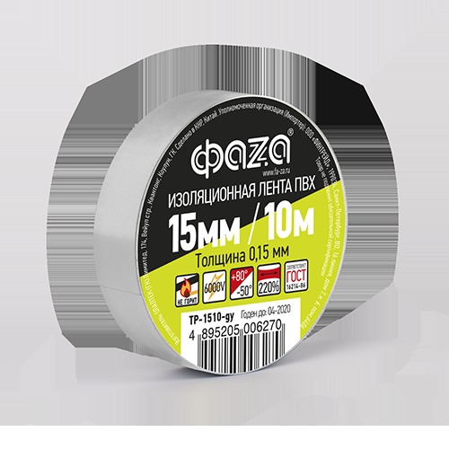 Изолента ФАZА TP-1510 (сер.) /10/200/