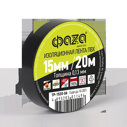 Изолента ФАZА TP-1520 (черн.) /10/200/