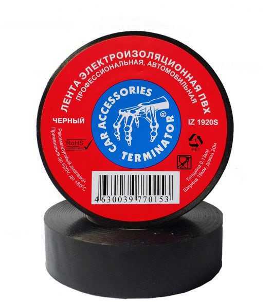 Изолента Terminator профессиональная для автосервиса, 19мм*20м, IZ 1920S, черная /10/250/