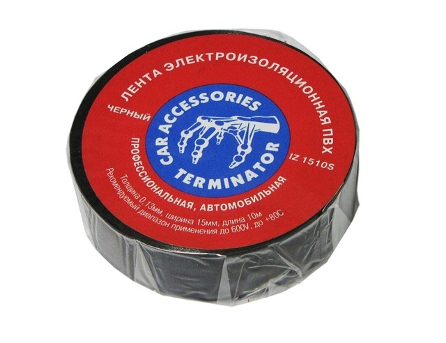 Изолента Terminator профессиональная для автосервиса, 15мм*10м, IZ 1510S, черная /10/500/