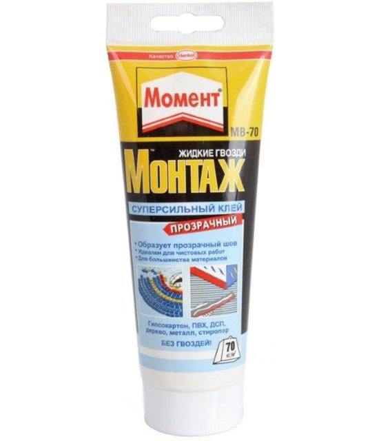 Клей "Момент Монтаж" MBп-70 Суперсильный, Жидкие гвозди, 185г, прозрачный /1/12/ 7436