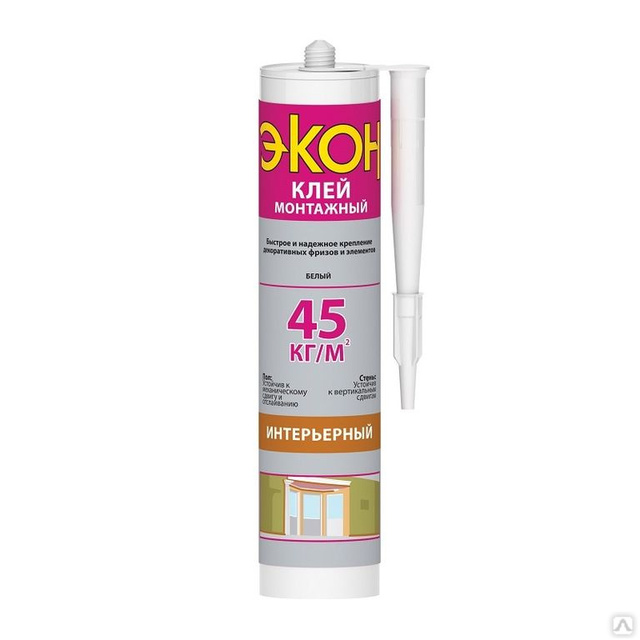 Клей монтажный "ЭКОН Интерьерный", картридж 400г, белый /1/12/ 8381