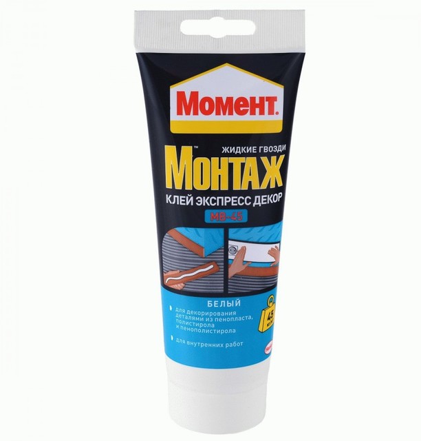 Клей "Момент Монтаж" MB-45 Экспресс Декор, Жидкие гвозди, 250 г, белый /1/12/ 2822