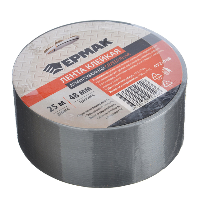 Клейкая лента армированная серебряная 48мм х 25м, инд.упаковка ЕРМАК /1/36/ 472-048