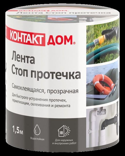 Ремонтная самоклеящаяся лента СТОП ПРОТЕЧКА "КОНТАКТ ДОМ", 1,5м, прозрачная /1/6/96/