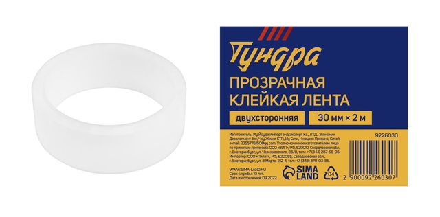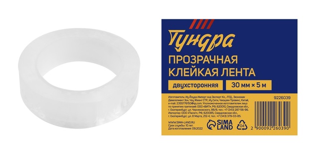 Клейкая лента двухсторонняя 30мм*2м (Нано-лента), многоразовая, прозрачная, ТУНДРА /1/80/ 9226030