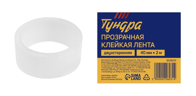 Клейкая лента двухсторонняя 40мм*5м (Нано-лента), многоразовая, прозрачная, ТУНДРА /1/42/ 9226040