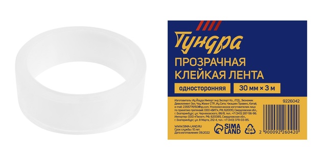 Клейкая лента односторонняя 30мм*3м (Нано-лента), прозрачная, ТУНДРА /1/80/ 9226042