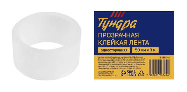 Клейкая лента односторонняя 50мм*3м (Нано-лента), прозрачная, ТУНДРА /1/48/ 9226044