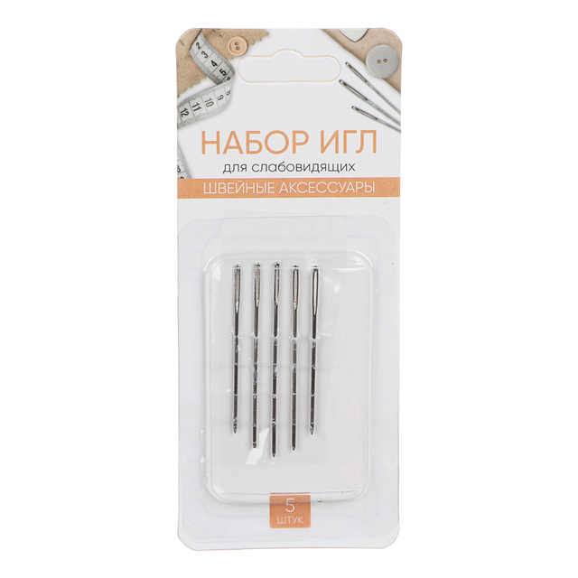 Иглы для слабовидящих, набор 5шт, сталь, арт.НС-024 /1/12/ 308-124