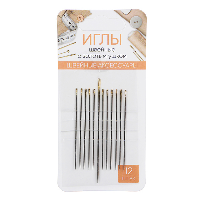 Иглы швейные с золотым ушком, набор 12шт, сталь /1/12/ 308-060
