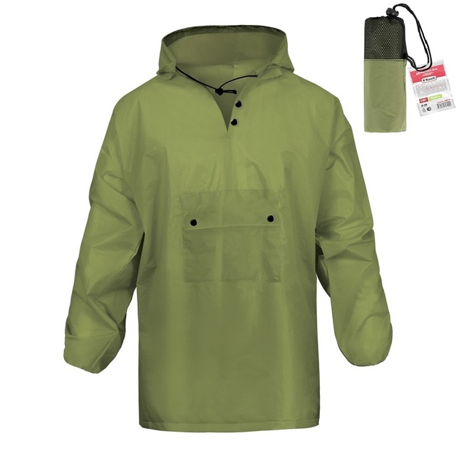 Дождевик-плащ ПЭ, на кнопках, зеленый, 70х118см, 20мкм, DPH003E, Komfi /1/100/ 3585