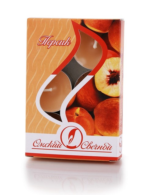 001802 свеча в гильзе ароматизированная персик 6шт/уп/180