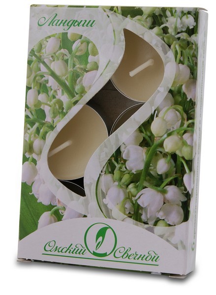 001804 свеча в гильзе ароматизированная ландыш 6шт/уп/180