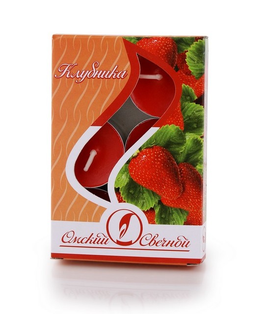 001806 свеча в гильзе ароматизированная клубника 6шт/уп/180
