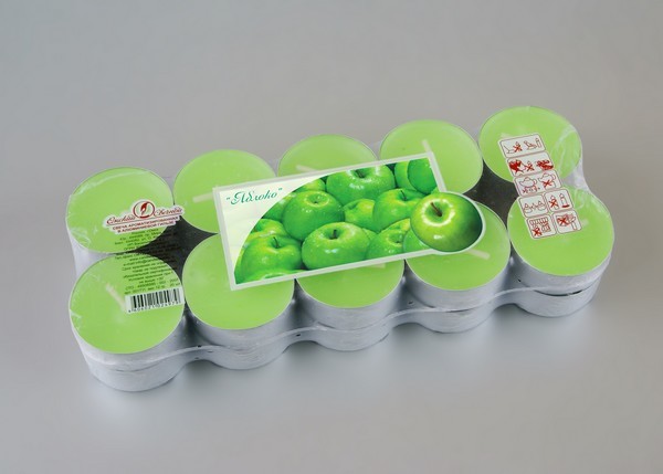 001811 свеча в гильзе ароматизированная яблоко 6шт/уп/180