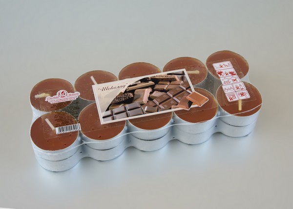 001727 свеча в гильзе ароматизированная шоколад 20шт/уп/240