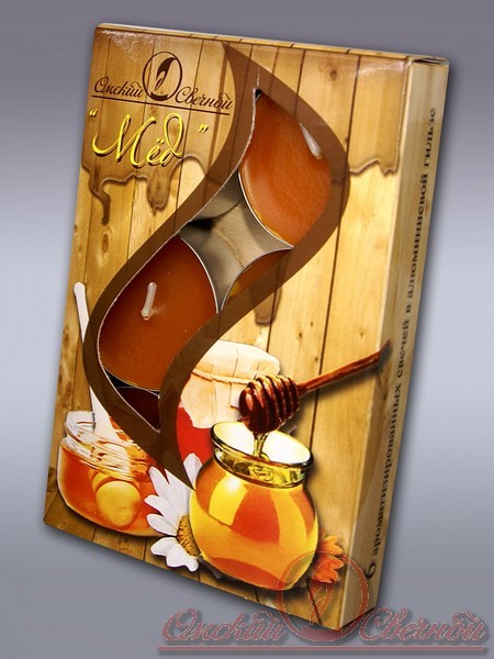 001832 свеча в гильзе ароматизированная мед 6шт/уп/180