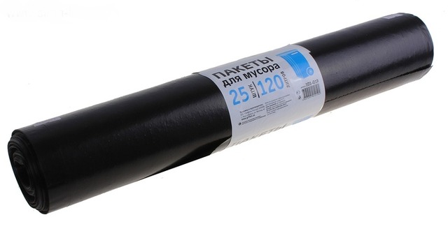 Мешки для мусора 120л (40 мкм) ПВД черн. 25 шт/рул. GRIFON /1/20/ 101-019