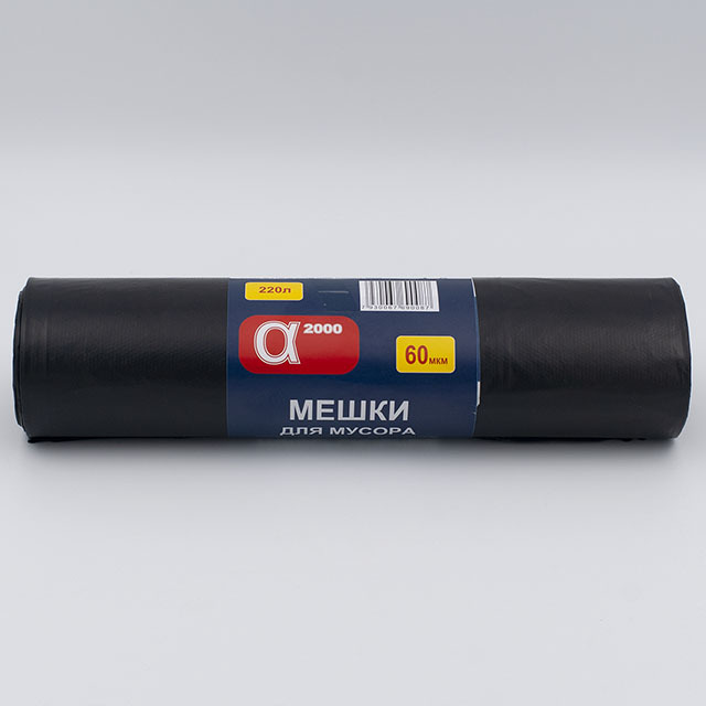 Мешки для мусора 220л (45 мкм) 90х130 см ПВД, черный 10шт/рул Альфа /1/10/