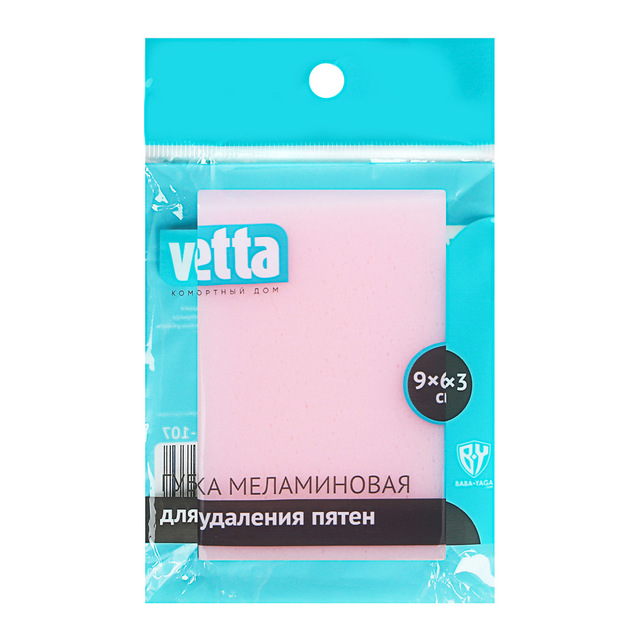 Губка для удаления пятен, меламин, 9х6х3см, розовая, VETTA /10/600/ 441-107