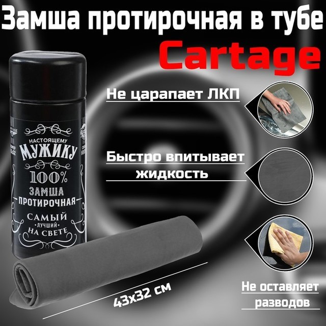 Замша протирочная 43?32см, черный, "Настоящий мужик" Cartage /1/100/ 6783216