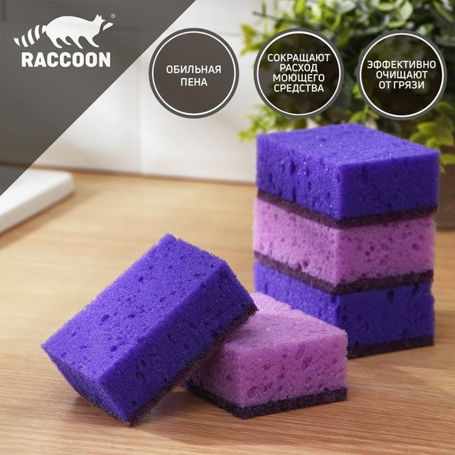 Губка бытовая для мытья посуды «Версаль» (уп. 5шт), 9?6,5?3,5см, крупнопористый поролон, фиолетовая,