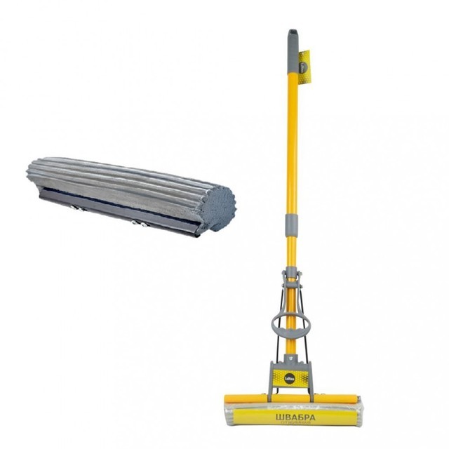 Швабра ПВА насадка, отжимная с одним роликом (желт.+сер.) 300002-1 /1/30/