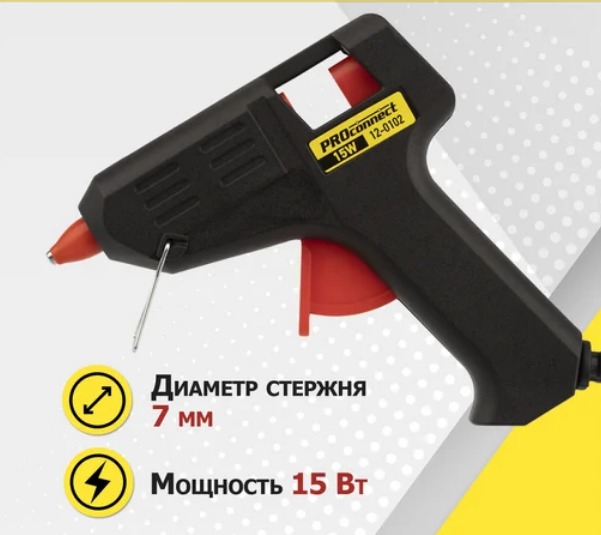 44061 | Клеевой пистолет 15 Вт Малый (блистер), 7мм, PROCONNECT /1/12/48/ 12-0102 | 431,15 | |||||
