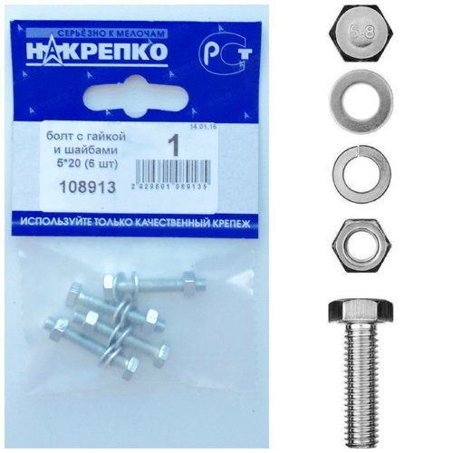 Болт с гайкой и шайбами 5*20 (6 шт) 108913 /1/25/