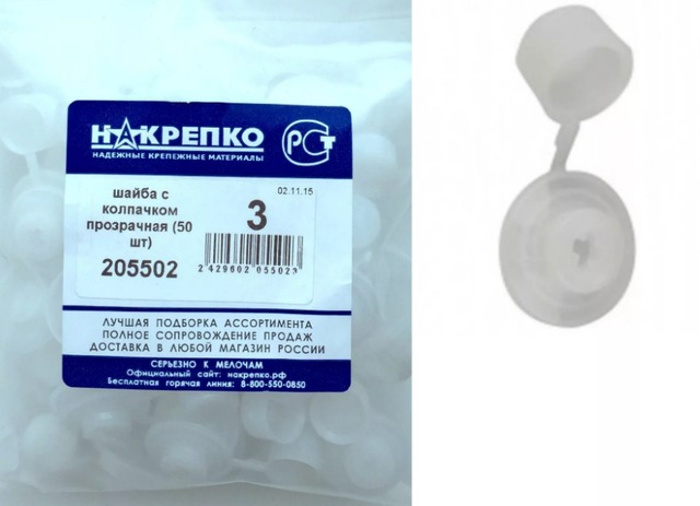 Шайба для поликарбоната с колпачком прозрачная (50 шт) 205502 /1/15/