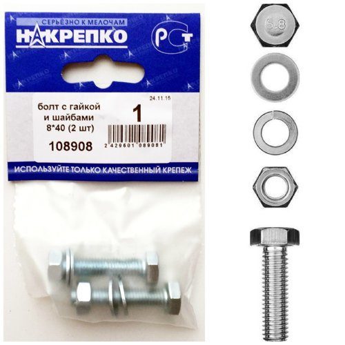 Болт с гайкой и шайбами 8*40 (2 шт) 108908 /1/25/