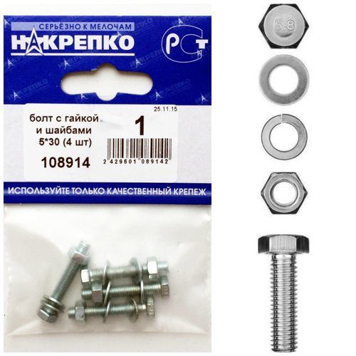 Болт с гайкой и шайбами 5*30 (4 шт) 108914 /1/25/
