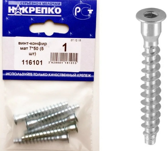 Винт-конфирмат 7*50 "НАКРЕПКО" (5 шт) /1/5/25/ 116101