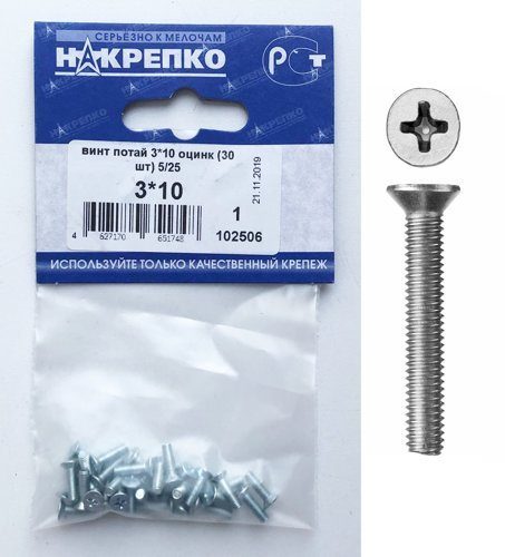 Винт потай 3*10 оцинк "НАКРЕПКО" (30 шт) /5/25/ 102506