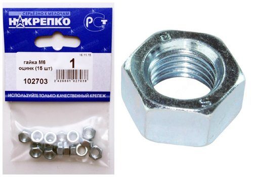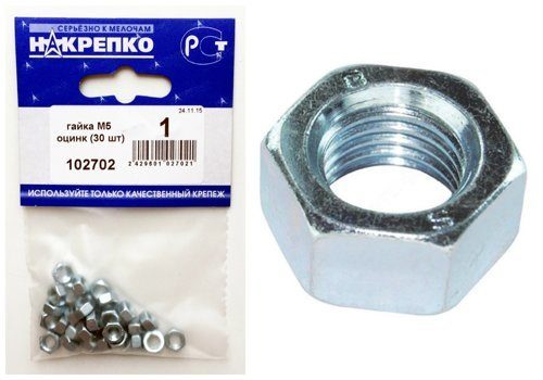Гайка М6 оцинк "НАКРЕПКО" (15 шт) /5/25/ 102703