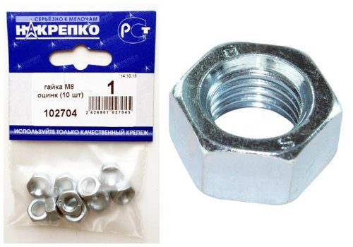 Гайка М8 оцинк "НАКРЕПКО" (10 шт) /5/25/ 102704