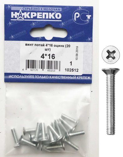 Винт потай 4*16 оцинк "НАКРЕПКО" (20 шт) 102512 /5/25/