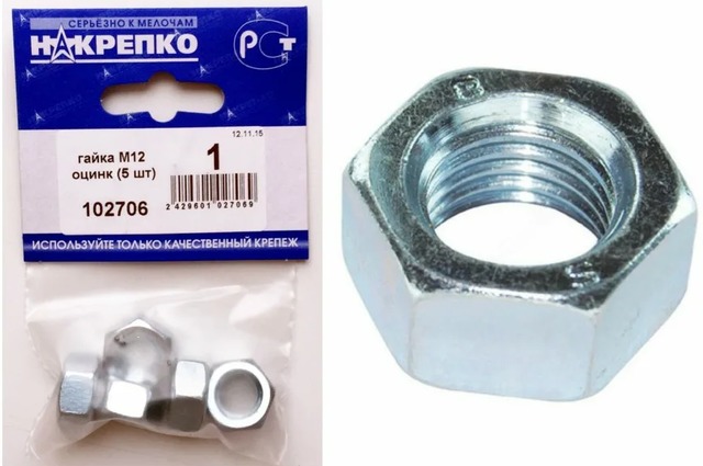 Гайка М12 оцинк "НАКРЕПКО" (5 шт) 102706 /5/25/