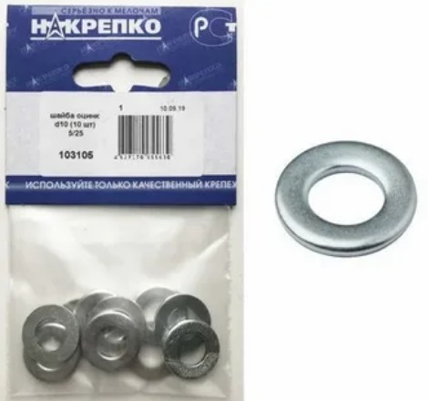 Шайба увеличенная d10 оцинк (5 шт), упак 103205 /1/25/
