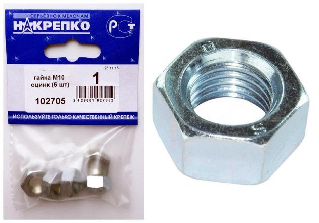 Гайка М10 оцинк "НАКРЕПКО" (5 шт) /1/25/ 102705