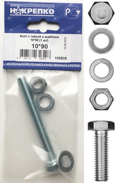Болт с гайкой и шайбами 10*90 "НАКРЕПКО" (1 шт) /1/5/25/ 108939
